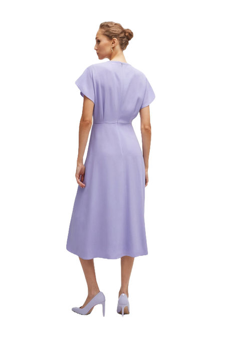 A feminine dress by BOSS Womenswear. Crafted in fluent material, this short-sleeved design features a plissé insert and keyhole neckline. This product is made with cellulose fibres, derived from natural raw wood material and sourced from responsibly managed forests. We cooperate with external organisations to ensure respectful treatment of virgin and endangered forests.